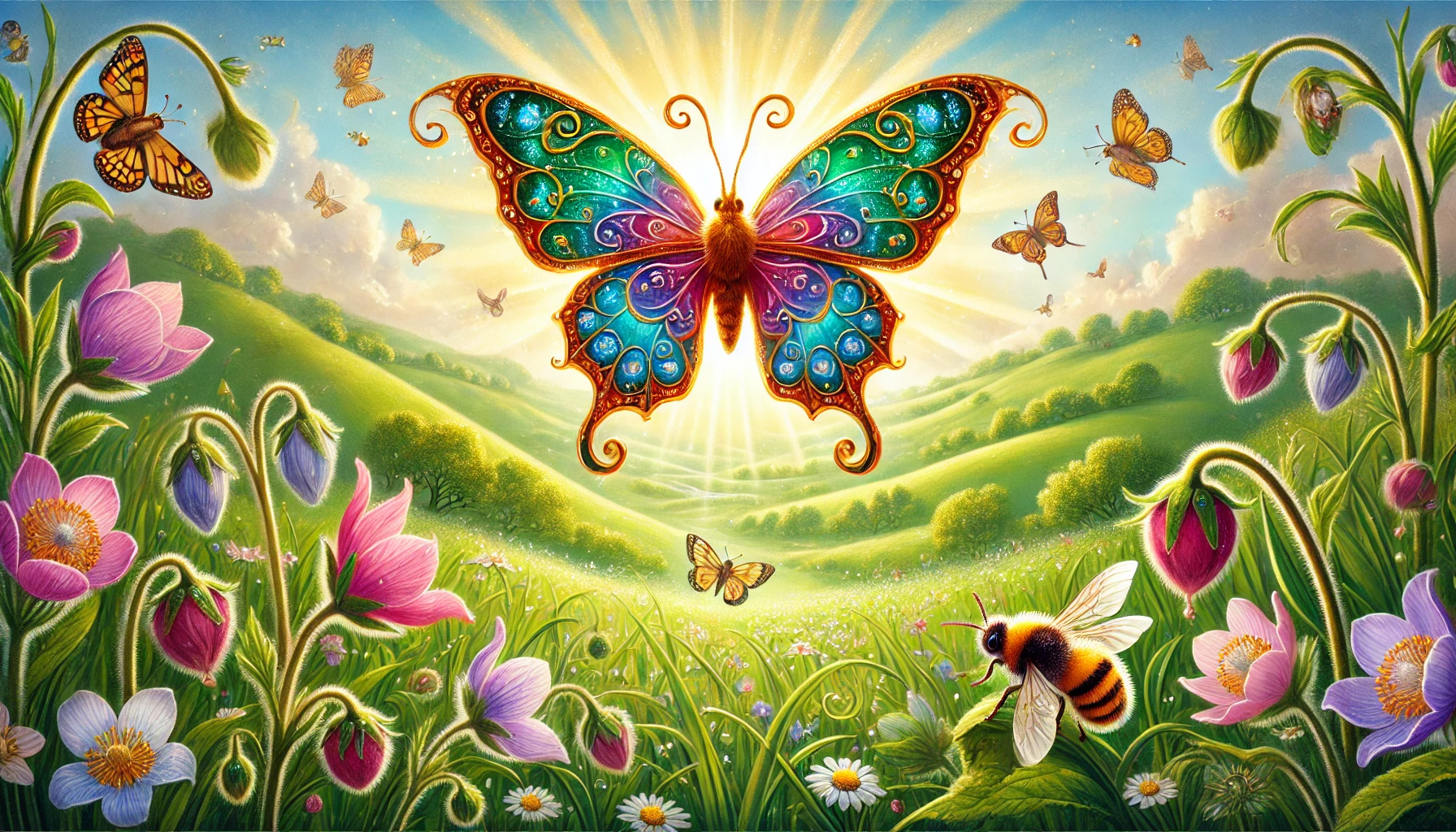 A rét lakói csodálattal nézték az első pillangót, aki szárnyalva hirdette a tavasz érkezését. A virágok kinyíltak alatta, a madarak csiviteltek, és a nap fénye egyre melegebben cirógatta a földet.